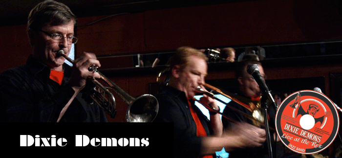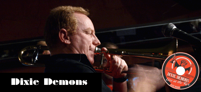 The band developed over the next few years as Dan worked to become one of Toronto's finest trombonists. While at Humber, Dan connected with multi-instrumentalist Ross Wooldridge, who was as passionate about this kind of jazz as he was. Being kindred spirits made for the perfect formula, and the duo become co-leaders of the Dixie Demons. The remainder of the band membership was a delightful evolution, which once established has remained essentially unchanged for nearly 30 years. The striking logo also was developed during that time as the band made efforts to increase their profile. The Dixie Demons Jazz Band continues to perform regularly for delighted audiences in the corporate world, the clubs, and the concert/festival scene.